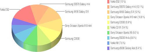 Potwierdzeniem dominacji firmy Samsung jest poniższy wykres . Mimo że ostatnio nie działo się dobrze z firmą Nokia to i tak trzyma się mocno i zajmuje drugie miejsce. Na trzecim miejscu znalazła się Sony Ericsson .