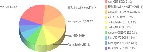 Poniżej prezentuję procentowe zestawienie najbardziej popularnych notebook -ów.