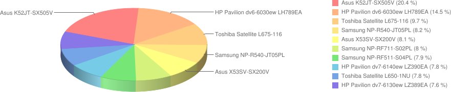 Jak widać z powyższego wykresu, największą popularnością cieszą się Asusy (w sumie 28,5 %), a drugie miejsce zajęły Samsungi (24 %) .