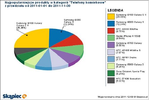 Jak widać Samsung jest najpopularniejszy. Zajmuje ponad 50 % rynku. Drugie miejsce zajął HTC – ponad 25 % . Podejrzewam, że taka tendencja utrzyma się w roku 2012 .