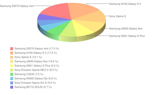 Ranking otwiera model firmy Samsung – Galaxy mini . Moim zdaniem o kolejności zadecydowała głównie cena oraz stosunek możliwości telefonu do ceny. W pierwszej dziesiątce znalazły się także smartfony firmy Sony. Ta firma także zawsze miała modele do dobrej cenie.  Ciekawe czy jest coś w stanie (w najbliższej przyszłości) zmienić kolejność na liście popularności. Chyba tylko Nokia z Android-em – co wydaje się niemożliwe 🙂